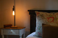 The cottage offers wood burning fireplaces throughout (including the bedrooms), Victorian baths, his/hers showers (as well as a private outside shower), a large kitchen with dining area and fireplace, and a back patio overlooking our orchard with barbeque facilities. Ideal for larger families or a group of friends.